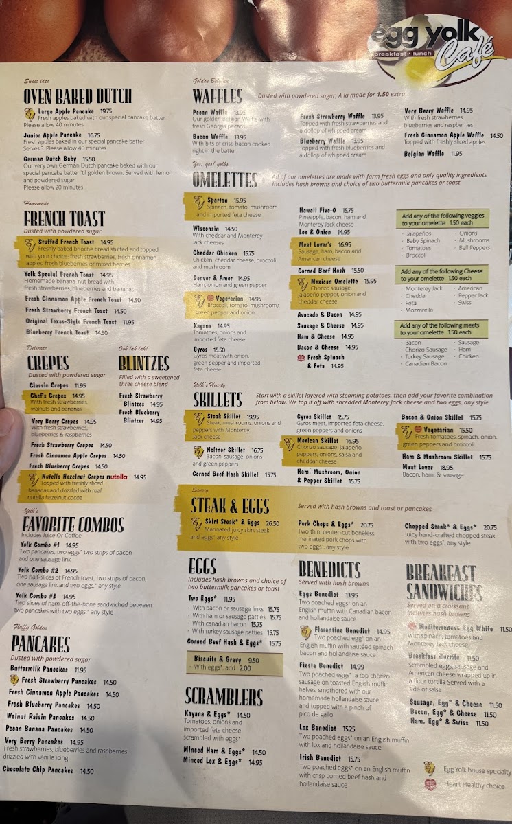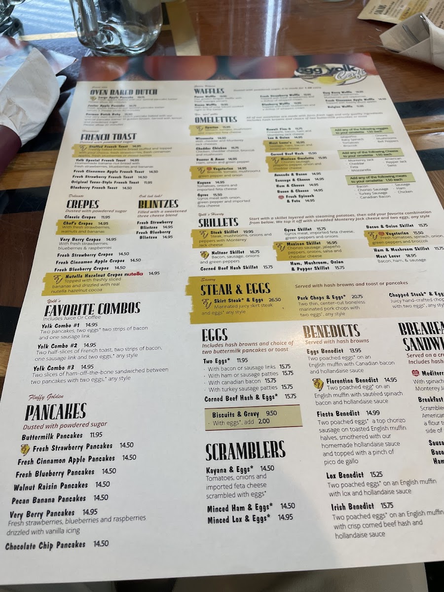 Don’t just take our word for it—customers rave about their experiences at Egg Yolk Cafe. Venkat Chandramoleshwar highlights the “top-quality” egg preparations, while other patrons appreciate the abundant portion sizes and friendly service, making this a beloved staple among locals. Another satisfied guest, Kris Gilbert, notes the freshness and tastiness of the menu items, especially the omelets and pancakes that remind them of cherished family breakfast traditions.